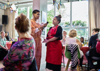 Het is tijd voor een feestje. Sjon is eindelijk uit de schuldsanering en als nieuwe coördinator van de voedselbank wil hij de oprichters, Leila en Maureen, eren voor al hun werk. Samen met vrijwilligers en zijn ex-zwager Wally organiseert hij een surprise-party. Dat doen ze met live muziek en lekker eten uit eigen keuken.  Ook jij bent van harte uitgenodigd. Kom feesten, eten en dansen en trek je mooiste kleren aan!