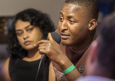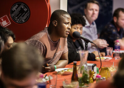 Na het grote succes van De Koningin van de Voedselbank in Amsterdam Noord (2018/ 2019) speelde Parels voor de Zwijnen een nieuwe editie in Zuidoost. Met nieuwe spelers en nieuwe verhalen. Niet alleen over schulden en armoede, maar ook verhalen over de impact van Corona en het al dan niet hebben van de juiste papieren.