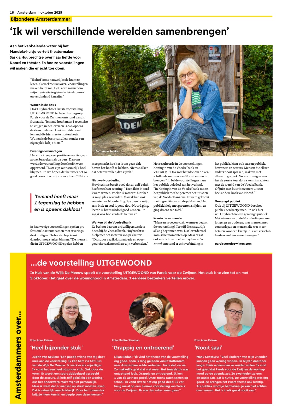 Interview met Saskia Huybrechtse & reacties van drie bezoekers in de Amsterdam Krant – oktober 2025